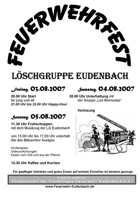 Die Löschgruppe Ittenbach der Freiwilligen Feuerwehr Königswinter begeht in diesem Jahr Ihr 100 jähriges Bestehen. Die Kameradinnen und Kameraden werden dies am Festwochenende Freitag, 10.8.2007…