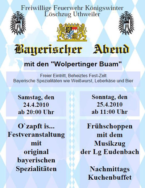 WeiterlesenBayrischer Abend in Uthweiler am 24./25.April 2010