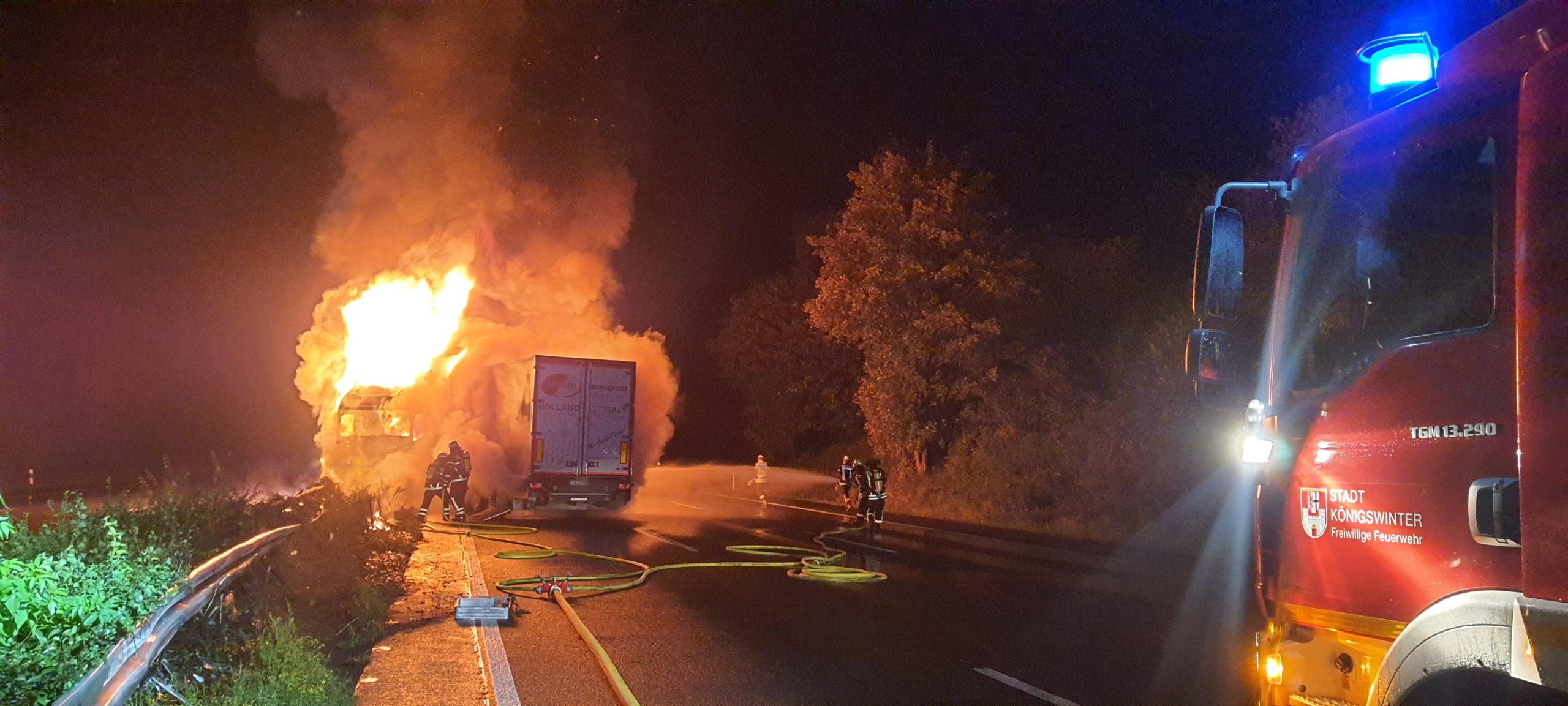 Auf der Autobahn A 3 ist am frühen Donnerstagmorgen ein Sattelzug verunfallt. Die Zugmaschine fing dabei Feuer. Die Freiwilligen Feuerwehren Königswinter und Sankt Augustin waren…