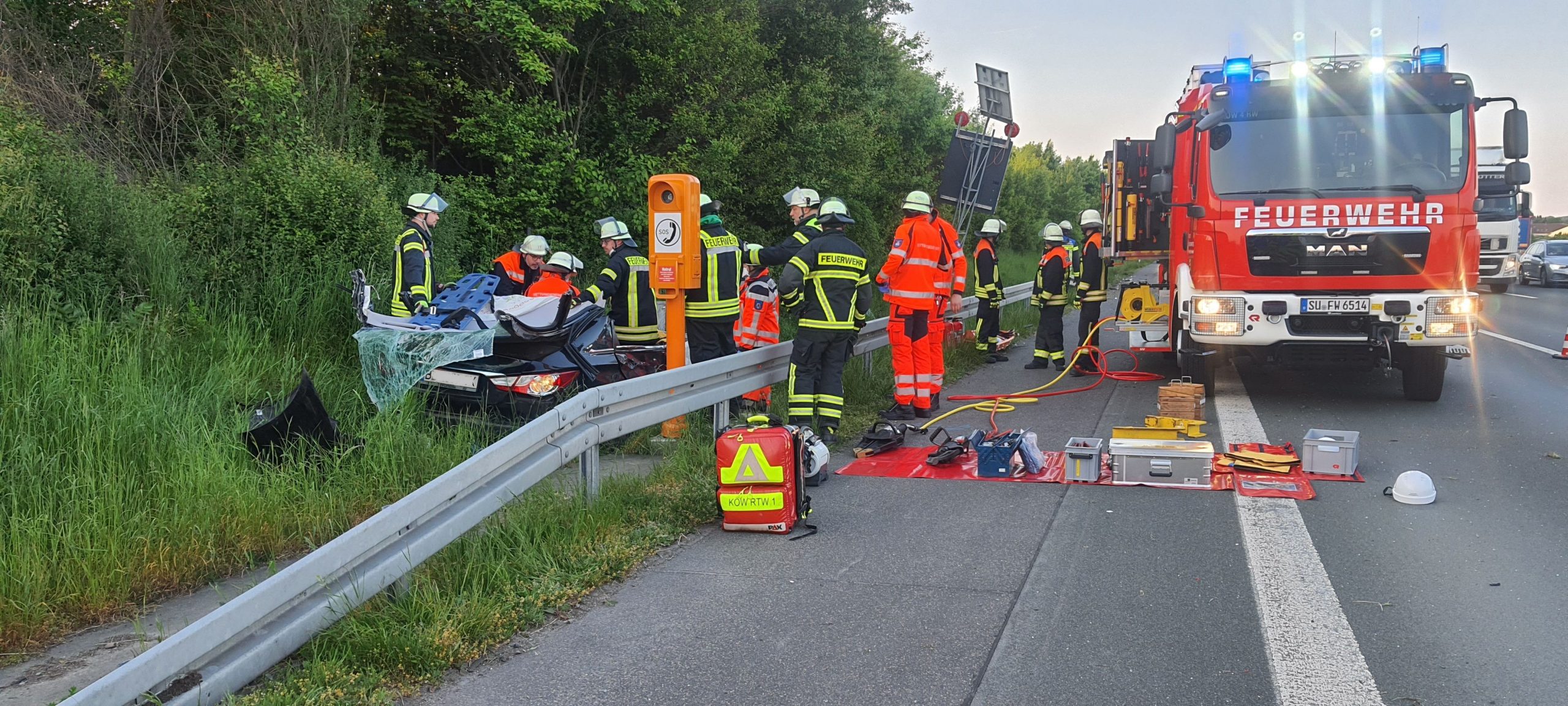 Bei einem Unfall auf der BAB 3 sind Montagmorgen zwei Personen verletzt worden. Zur Rettung des Fahrers musste die Feuerwehr Königswinter das Fahrzeug mit hydraulischen…