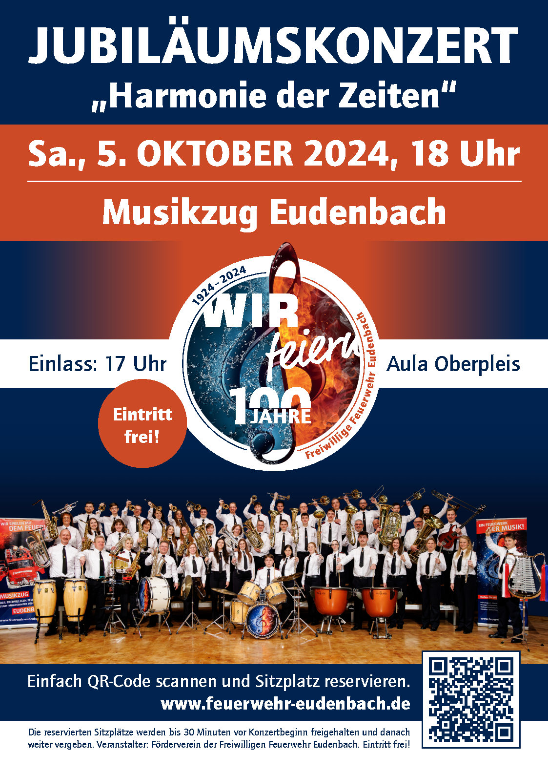 Der Musikzug Eudenbach lädt anlässlich des 100 jährigen Jubiläums der Einheit zu einem Jubiläumskonzert mit dem Motto „Harmonie der Zeiten“ für Samstag 5.Oktober 2024 18…