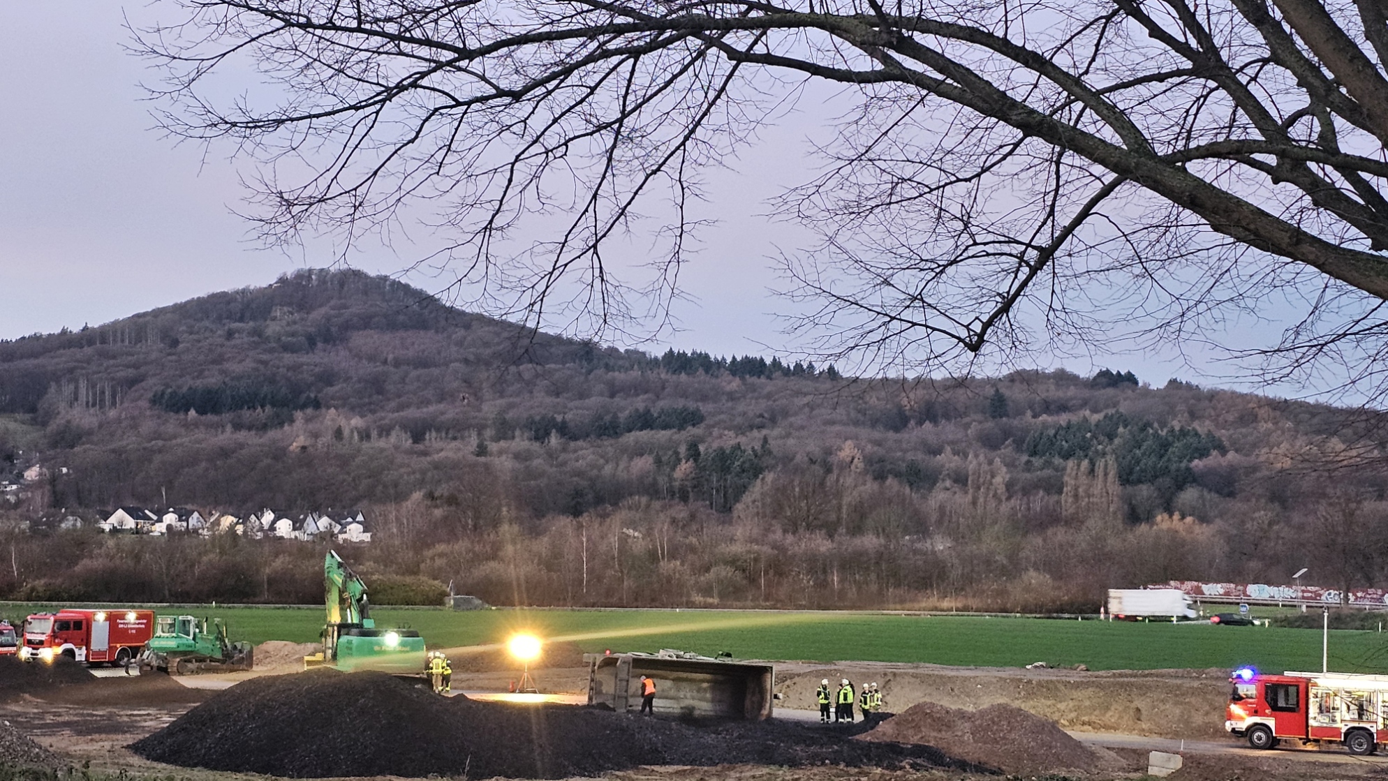Auf der Großbaustelle der Autobahn A3 kam es am Dienstagmorgen zu einem Unfall mit einem LKW. Der Sattelzug kippte beim Abkippen von Schüttgut samt Zugmaschine…