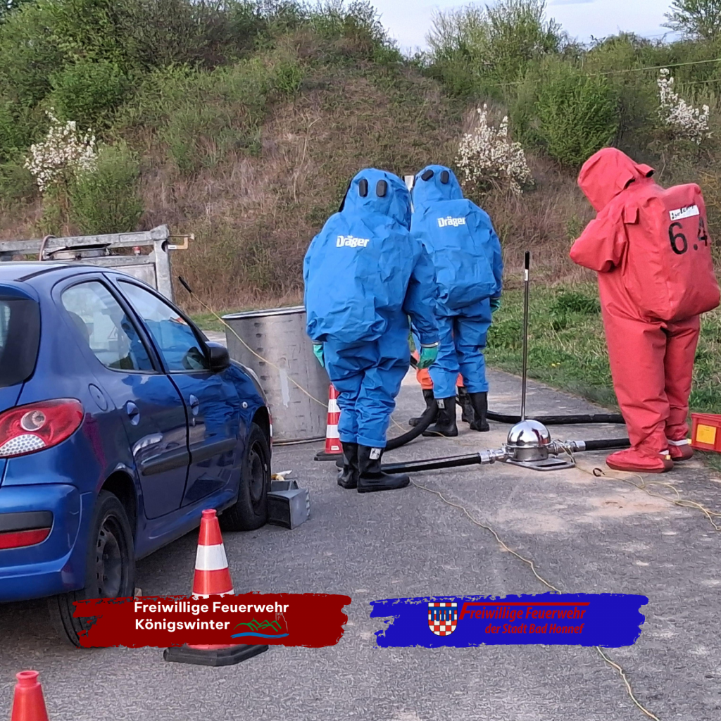 Angenommen wurde ein Verkehrsunfall mit Gefahrstoffbeteiligung – ein Szenario, das ein koordiniertes und sicheres Handeln sowie eine spezielle Aus- und Fortbildung erfordert. Im Fokus stand insbesondere die interkommunale Zusammenarbeit, da bei komplexen Einsatzlagen ein reibungsloses Zusammenspiel aller beteiligten Einsatzkräfte entscheidend ist.