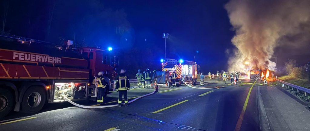 Bad Honnef, Autobahn A3. Auf der Autobahn brannte ein Bus in Fahrtrichtung Köln zwischen dem Rastplatz Logebachtal und der Abfahrt Siebengebirge. Der Tankwagen wurde zur Löschwasserversorgung für die freiwilligen Feuerwehr Bad Honnef entsandt.