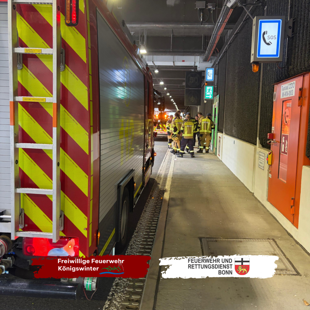 Gemeinsam mit der Feuerwehr Bonn nahmen rund 200 Einsatzkräfte an einer umfassenden Einweisung in die Tunnelkette der B42 teil.