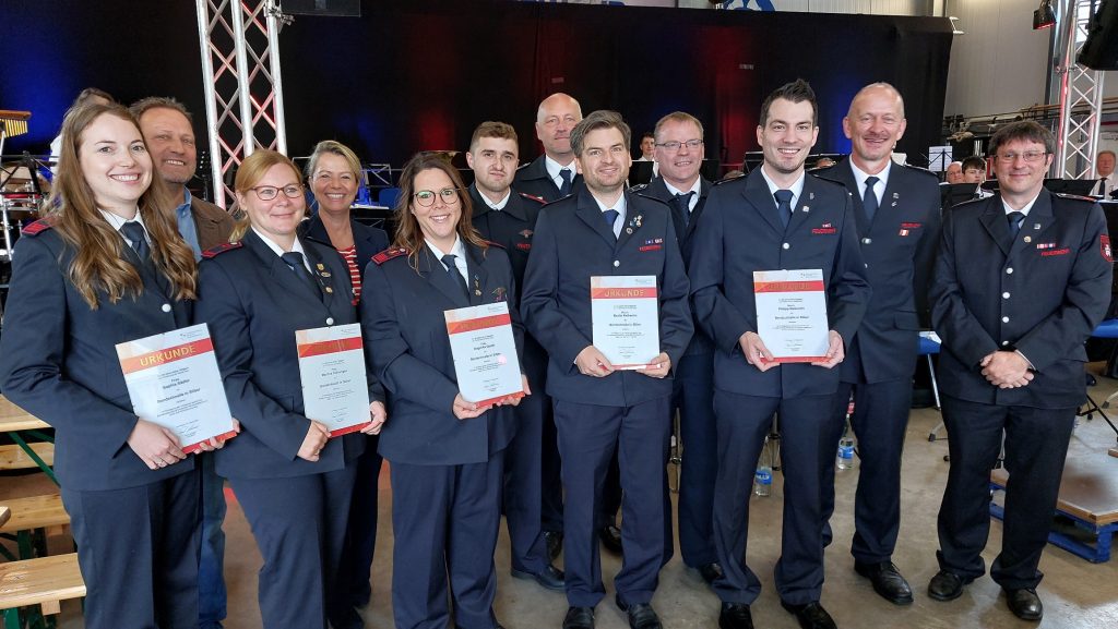 Im Rahmen eines kleinen offiziellen Aktes wurden Mitglieder des Musikzuges durch den Leiter des Musikzuges Stephan Ennenbach geehrt: