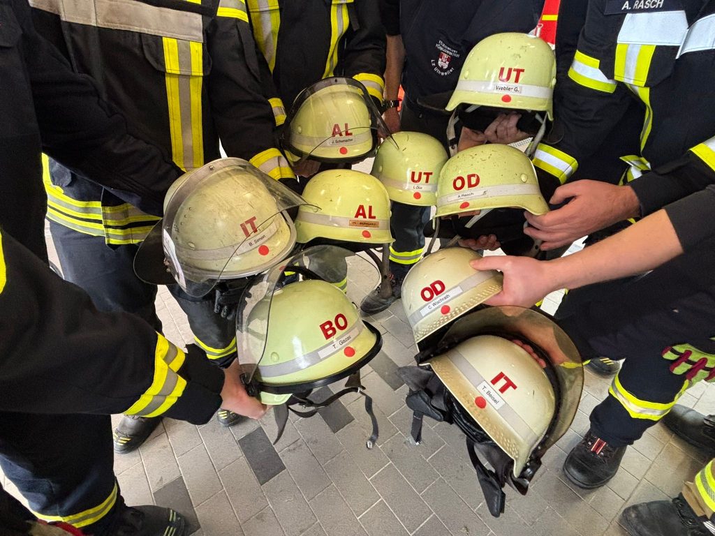 Am roten Punkt auf dem Helm kann man in Königswinter erkennen, wer einsatzbereit für ABC-Lagen ist. Heute gab es einige neue Punkte zu verteilen