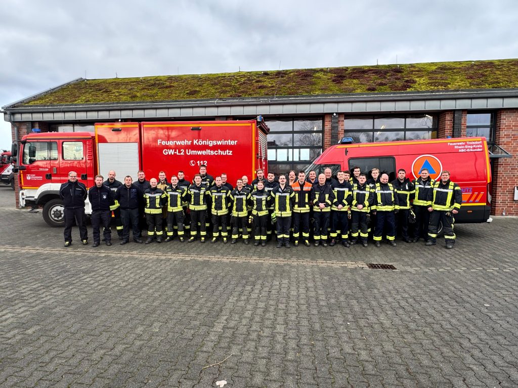 Insgesamt 24 Feuerwehrangehörige nahmen am Lehrgang teil, darunter 13 aus Bad Honnef und 11 aus Königswinter. Während der Ausbildung standen grundlegende Maßnahmen im Umgang mit atomaren, biologischen und chemischen Gefahrenstoffen im Mittelpunkt.