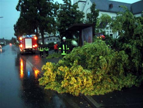 Die Sommergewitter, die am Wochenende auch über das Siebengebirge zogen, haben keine größeren Schäden verursacht. Die Feuerwehr Königswinter musste am Samstagabend lediglich zu 2 Einsätzen ausrücken. Die Löschgruppe Niederdollendorf wurde zu einem vollgelaufenen Keller gerufen, die Wehrleute in Eudenbach entfernten einen umgestürzten Baum. Nach dem die Wehrführung über ein drohendes Unwetter informiert worden war, entschloss man sich, das Zeltlager der Stadtjugendfeuerwehr in der Königswinterer Altstadt vorzeitig zu beenden. Die Kinder und Jugendlichen wurden nach Hause gefahren und bauten nach Durchzug der Gewitter am Sonntagmorgen ihre Zelte ab.