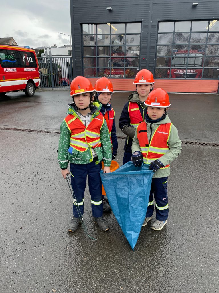 Erstmals haben sich die Kinderfeuerwehren aus der Altstadt und Oberdollendorf an der städtischen Reinigungsaktion „Frühjahrsputz“ beteiligt. 28 Kinder sowie 12 Betreuerinnen und Betreuer von der Blaulichtbande Altstadt und den Löschdrachen Oberdollendorf waren am Samstagmorgen rund um die Feuerwehrhäuser im Einsatz, um Müll einzusammeln. Gemeinsam füllten sie rund 15 Säcke, die nun von der Stadt Königswinter entsorgt werden.