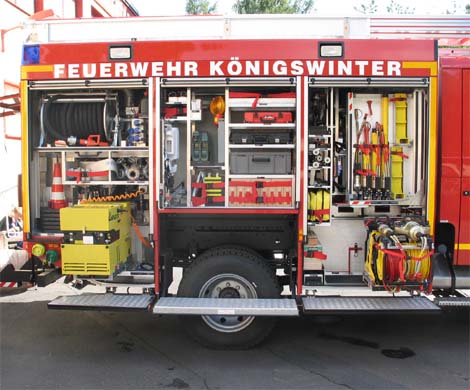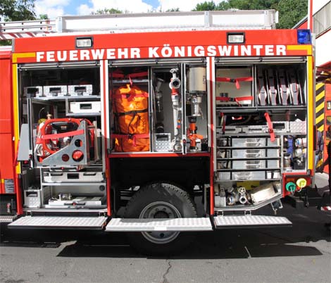 Das neue Hilfeleistungslöschfahrzeug des Löschzugs Altstadt konnte in der vergangenen Woche von einer Delegation aus Verwaltung, Wehrführung und Löschzug beim Fahrgestellhersteller MAN abgeholt werden. In den nächsten Wochen erfolgt eine Einweisung aller Wehrleute, damit das neue Fahrzeug nach seiner offiziellen Übergabe am 8.Oktober in den Einsatzdienst übernommen werden kann. Im Rahmen eines Berichtes in unserer Feuerwehrzeitung Florian 6 werden wir die zahlreichen Details der Fahrzeugausstattung sicherlich noch näher vorstellen. Den interessierten Lesern unserer Homepage möchten wir vorab das Fahrzeug zumindestens in ein paar Bildern näher bringen. Diese sind in der Bestückungsphase entstanden, so dass sich noch Details gegenüber dem Endzustand ändern können.