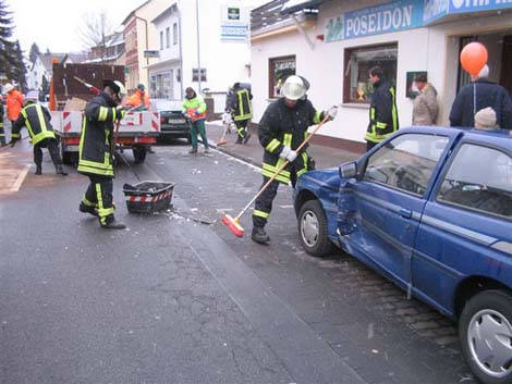 Der Löschzug Oelberg der Freiwilligen Feuerwehr Königswinter wurde am Dienstag gegen 15.21 Uhr zu Aufräumungsarbeiten nach einem Verkehrsunfall in den Ortskern von Heisterbacherrott gerufen. Dort hatte eine Frau beim Einparken die Gewalt über ihr Automatikfahrzeug verloren. Sie beschädigte 2 PKW und schleuderte im Anschluss auf die gegenüberliegende Straßenseite. Dort kam das Fahrzeug vor einer Hauswand zum Stehen. Eine Fußgängerin wurde hierbei leicht verletzt und musste vom Rettungsdienst in ein Krankenhaus gebracht werden. 14 Wehrleute des Löschzugs Oelberg befreiten die Straße von Unfalltrümmern und fingen auslaufende Betriebsstoffe aus. Die Dollendorfer Straße blieb während der Aufräumungsarbeiten rund 45 Minuten gesperrt.