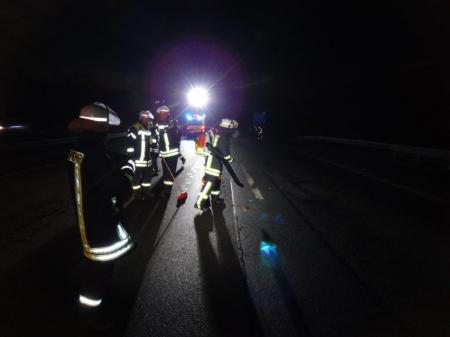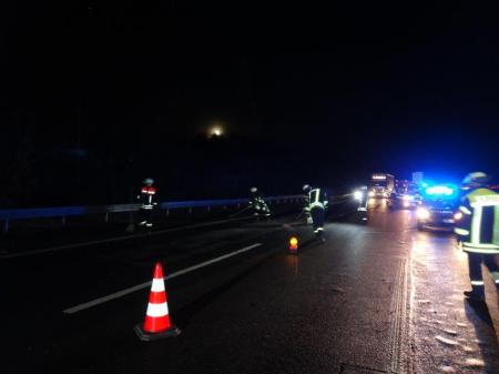 Um kurz nach 6:30 Uhr wurden mehrere Löschzüge der Freiwilligen Feuerwehr Königswinter zu dem Verkehrsunfall auf die BAB 3 alarmiert. Der Bordcomputer des Unfall-PKW hatte über das BMW-Notfallsystem der Feuer- und Rettungsleitstelle von dem Unfall Kenntnis gegeben. Das System meldete sogar, dass das Fahrzeug auf dem Dach liegen würde. Zusätzliche Meldungen, dass der Fahrer eingeklemmt sei, bestätigten sich bei Eintreffen der ersten Rettungskräfte nicht. Der verletzte Fahrer konnte den PKW selbstständig verlassen. Er wurde noch vor Ort vom städtischen Rettungsdienst versorgt und anschließend in ein Krankenhaus gebracht. Kräfte des Löschzuges Ittenbach übernahmen die Absicherung und Ausleuchtung der Unfallstelle. Auslaufende Betriebsstoffe wurden mit Bindemittel aufgenommen und Trümmer auf einer Strecke von ca. 200 Metern geräumt. Für die Bergungsmaßnahmen wurde die Autobahn kurzzeitig gesperrt, bevor der Verkehr einspurig an der Unfallstelle vorbei geführt werden konnte. Es bildete sich ein Stau im Berufsverkehr. Nach rund 2 Stunden wurde die Einsatzstelle von Einsatzleiter Stadtbrandinspektor Michael Klingmüller an die Polizei übergeben. Weitere Einheiten der Feuerwehr konnten den Einsatz frühzeitig abbrechen und mussten nicht mehr tätig werden.