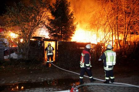 Um 17.44 Uhr wurde die Feuerwehr am Montag zu einem Dachstuhlbrand im Bereich eines Modemarktes am Proffenweg in Oberdollendorf alarmiert. Nach Eintreffen der ersten Kräfte ergab die Erkundung, das nicht der Markt sondern ein unmittelbar neben dem Gebäudekomplex errichteter rund 50 Quadratmeter großer Schuppen in Brand stand. Während dort umfangreiche Löschmaßnahmen durch die Einsatzkräfte eingeleitet wurden, evakuierten andere Wehrleute die Verkaufsräume der Märkte. Deren Mitarbeiter wurden aufgefordert, die Belüftungsanlagen auszuschalten, um eine Verrauchung der Bereiche zu verhindern. Zur weiteren Unterstützung waren in dieser Phase zusätzliche Feuerwehreinheiten entsandt worden, da ein Übergreifen des Feuers auf das Einkaufscenter nicht auszuschließen war. Schnell gelang es jedoch, das Feuer soweit einzugrenzen, das diese Gefahr auszuschließen war. Nach rund 30 Minuten konnten die Märkte wieder geöffnet werden, während Nachlöscharbeiten im Bereich des niedergebrannten Schuppens begannen. Um ein erneutes Aufflammen des Brandes zu verhindern, setzte die Feuerwehr hier Schaum ein.