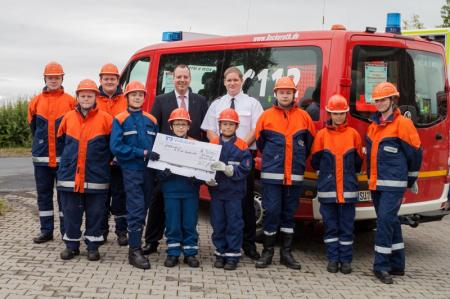 Es gab auch umgehen die Gelegenheit dieses Wissen anschaulich zu vertiefen. Die Jugendfeuerwehr führte eine Show-Übung durch. Unter dem wachsamen Auge des Publikums brauste das bockerother Löschfahrzeug mit Blaulicht und eingeschaltetem Martinhorn auf den Vorplatz. Fluchs sprangen die Jugendfeuerwehrleute heraus und bauten einen dreifachen Löschangriff auf. Durch einen Kommentator wurden die einzelnen Arbeitsschritte der Jugendlichen erläutert. Auch wenn es bei dieser Show-Übung nicht auf Geschwindigkeit ankam legte die Jugendfeuerwehr ein erstaunliches Tempo vor und beendete die Aufgabe in einer wettkampftauglichen Zeit. Dies wurde vom Publikum mit großem Applaus honoriert.
