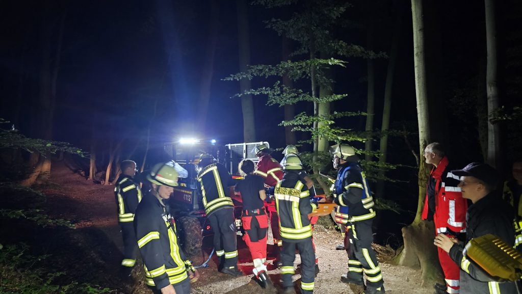 Im sogenannten Teufelarschbachtal war der Mann mit seinem Fahrrad in unwegsamen Geländen am Freitagabend gestürzt. Der Rettungsdienst versorgte, den am Fuß verletzten im Wald. Die Löscheinheit Bockeroth wurde um 20:56 Uhr zur Unterstützung des Rettungsdienstes alarmiert. Nach kurzer Suche fanden die Rettungskräfte den Mann auf einem schmalen Pfad zwischen umgestürzten Bäumen. Zum schnellen und schonenden Transport wurde kurze Zeit später das Quad vom Löschzug Ittenbach durch Einsatzleiter Tim Ziegenbein alarmiert. Der Patient wurde auf einer Schleifkorbtrage gelagert auf der Ladefläche des geländegängigen Spezialfahrzeuges bis zum bereitstehenden Rettungswagen am Sportplatz transportiert. Der Einsatz endete nach 1,5 Stunden.
