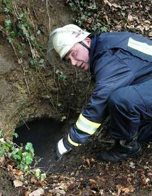 Königswinter-Hartenberg. Eine Suchaktion mit etwa 50 Kräften von Feuerwehr, Polizei und Rettungsdienst lösten zwei vermisste Jungen im Alter von zehn und zwölf Jahren heute Nachmittag im Ortsteil Hartenberg aus. Gegen 15.30 Uhr rief der Vater eines der beiden Jungen die Feuerwehr, als er auf der Suche nach ihnen im Wald unweit des Dorfes einen Höhleneingang entdeckte, aus dem Qualm drang. Die Leitstelle des Rhein-Sieg-Kreises alarmierte daraufhin die Löschgruppen Uthweiler und Ittenbach, die mit speziellen Langzeit-Atemschutzgeräten ausgestattet sind, sowie den Einsatzleitwagen aus Oberdollendorf. Da die Größe und Tiefe der Höhle nicht bekannt war, wurden zur Sicherheit auch die Höhenrettungsgruppen der Freiwilligen Feuerwehr Hennef-Söven und der Berufsfeuerwehr Köln alarmiert, die auch für solche Einsatzlagen geschult sind. Des weiteren wurden zwei Rettungswagen und ein Notarzt zur Einsatzstelle beordert. Ein Trupp der Feuerwehr ging unter schwerem Atemschutz in die Höhle vor. Auf Grund der Enge des Eingangs kamen die Einsatzkräfte nur kriechend voran. Wie sich herausstellte, war die Höhle lediglich etwa 20 Meter lang und nicht sehr tief, so dass die Höhen- und Tiefenretter aus Söven und Köln den Einsatz abbrechen konnten. Die beiden Jungen wurden kurz darauf unversehrt im Wald gefunden. Einsatzleiter Bruno Lemke, stellvertretender Wehrführer der Königswinterer Feuerwehr, zeigte sich erleichtert über den glimpflichen Ausgang der Situation. „Die Alarmierung war schon sehr dramatisch, aber glücklicherweise ist nichts Schlimmes passiert. Der Zugang zur Höhle sollte aber so schnell wie möglich verschlossen werden“. Nach etwa einer Stunde rückten die letzten Einsatzkräfte wieder in ihre Gerätehäuser ein.